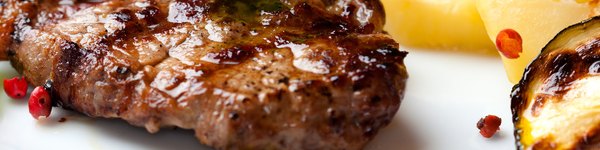 Grüner Pfeffer in Gorgonzolasauce, Champignons, Zwiebeln, Bratkartoffeln, Pommesfrites oder Kroketten, dazu Salatbeilage